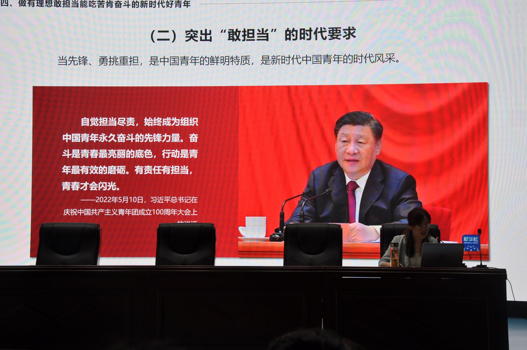 全面推进学生思想政治建设是新时代落实立德树人根本任务的重要举措。6月9日,我校党委书记孙娟以“深入学习领会党的二十大精神,做有理想敢担当能吃苦肯奋斗的新时代好青年”为主题,为全校团员和入团积极分子上思政课。孙娟书记阐述了以中国式现代化全面推进中华民族伟大复兴的重大意义,并运用生动的案例、翔实的数据和百年党史故事,生动具体地讲述了中国式现代化的重要特征和本质要求、中国式现代化的探索之路和总体目标,推进中国式现代化的实现途径等问题。