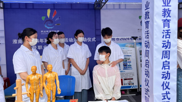 在技能成果展示环节,学校组织了护理急救、康复理疗、口腔护理宣教等现场互动环节,吸引了众多群众前来体验,营造了关注职业教育、尊重技能的良好氛围。学校工作人员除了常规宣传以外,还充分利用抖音等形式开展视频网络直播,进一步提升学校的吸引力、影响力,淮南新闻联播、淮南日报、工人日报、人民网等多家媒体对我校技能展示给予充分的报道。