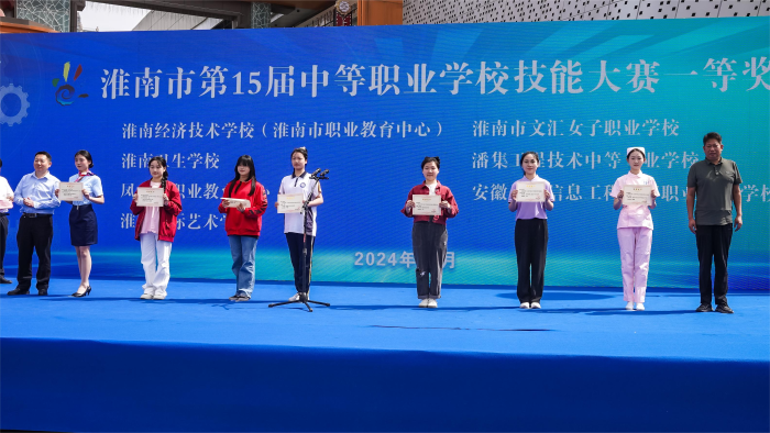 启动仪式介绍了全市职业教育活动周和职业院校技能大赛整体情况,并为职业院校技能大赛一等的学生代表颁奖。我校获得护理技能大赛一等奖的选手代表登台接受表彰。