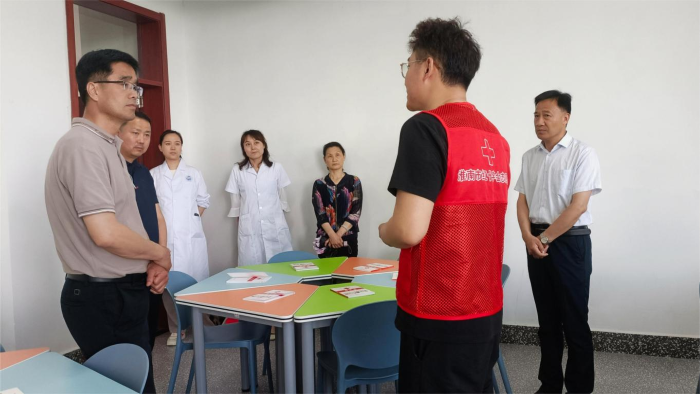 在淮南市红十字急救站淮南卫校站点进行考察调研时,急救培训员向来校考察的校领导展示了我校应急救护培训手册、现场演示了心肺复苏等急救内容,各校领导对我校应急救护相关培训课程给予高度肯定。希望以此次考察交流为契机,积极寻求义务教育与技能培训对接融合,提升学生应急救护水平,树立学生积极投身职教奉献社会的精神。
