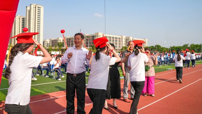 在学校操场,师生及家长代表共聚一堂,共同见证了这一庄严难忘的时刻。在庄严的国歌声中,成人礼仪式正式拉开帷幕。沈安庆副校长在致辞中为在场的同学们送上真挚的青春寄语,并提出希望:希望学生们心怀敬畏,砥砺品格;希望学生们铭记责任,敢于担当;希望学生们胸怀感恩,传递仁爱。