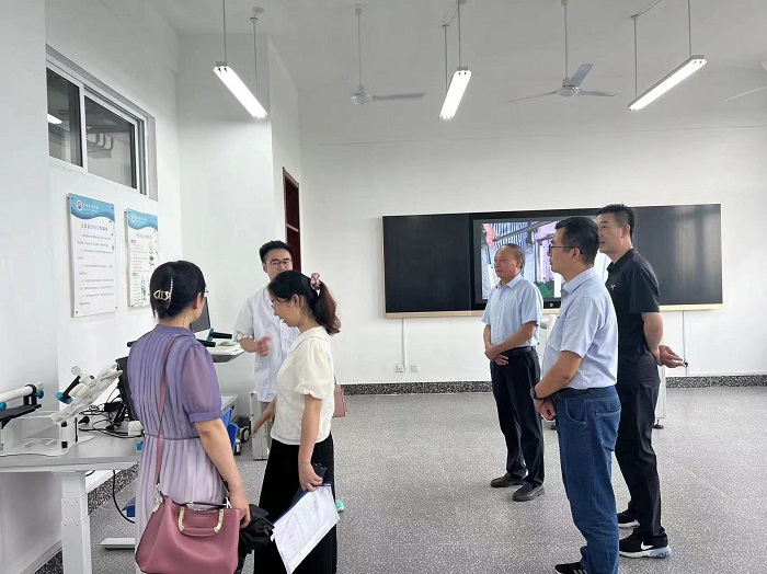 会后,庐州卫生科技学校领导一行参观了学校人体科学馆、护理、康复技术等实训室,详细询问了关于实训基地的建设、设备配置、使用情况等方面的情况。学校实训室布局科学合理,功能齐全,设施配备精良,管理规范有序,给参观领导一行留下了深刻印象。
