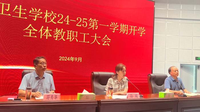 2024年9月6日,淮南卫生学校举行2024-2025 学年第一学期全体教职工大会。大会由校党委委员、副校长沈安庆主持,全体教职工参会。