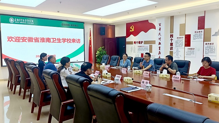 5月22日,学校党委书记孙娟带队赴安徽医学高等专科学校开展专项调研,洽谈深化中高职衔接合作。安徽医学高等专科学校党委副书记、校长吴文涌,党委副书记王劲松,党委委员、学生处处长汪长如,中高职教育合作负责人代旭光参加座谈会。会议由王劲松主持。双方就“三二分段制”中高职分段制人才培养合作工作、深化中高职衔接、构建现代职教体系等议题进行深入交流。