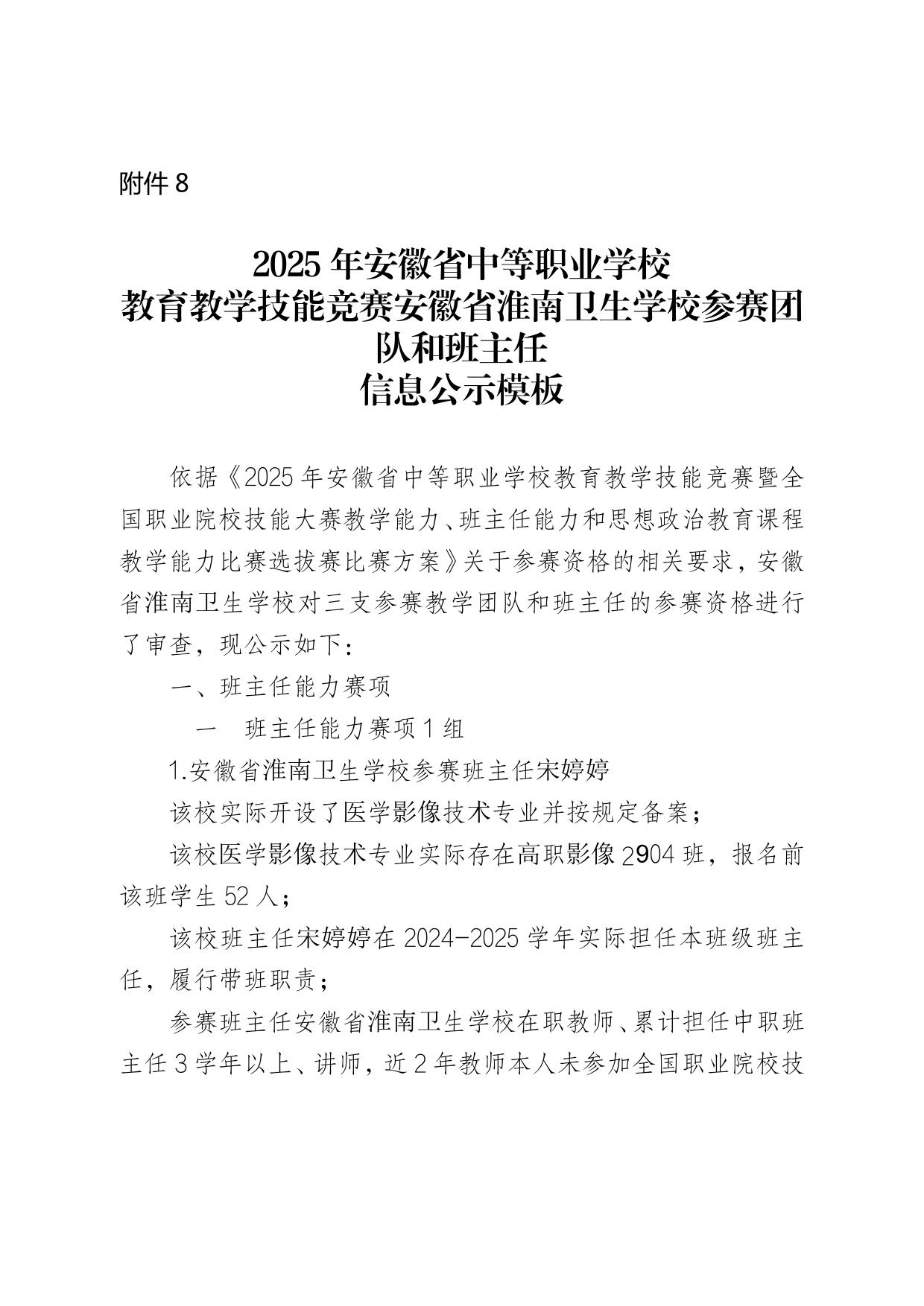 2025年安徽省中等职业学校教育教学技能竞赛BB贝博艾弗森官方网站参赛团队和班主任信息公示
