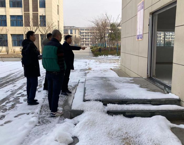 同日上午校党委委员、副校长栾振知带领保卫科、学生科、总务科、教务科等相关科室安全员进行校园安全检查并部署物业及第三方工作人员进行校园积雪清除工作。