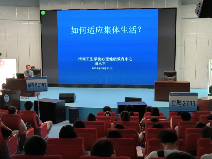 8月30日上午,校学生科心理咨询中心围绕如何适应集体生活,向同学们重点讲述了进入一个新环境可能面临的变化,帮助新生做好开学初心理调适,以稳定的情绪、乐观的心态迎接新学期,切实增强学生的心理健康意识和心理防护能力。